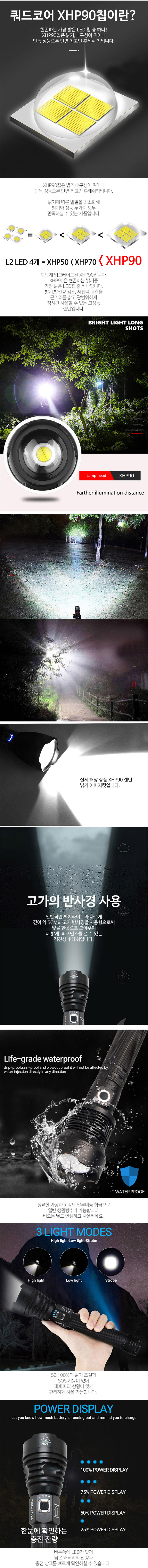 미나티 XHP90 해루질 LED후레쉬 손전등 랜턴 써치라이트 세트 J73