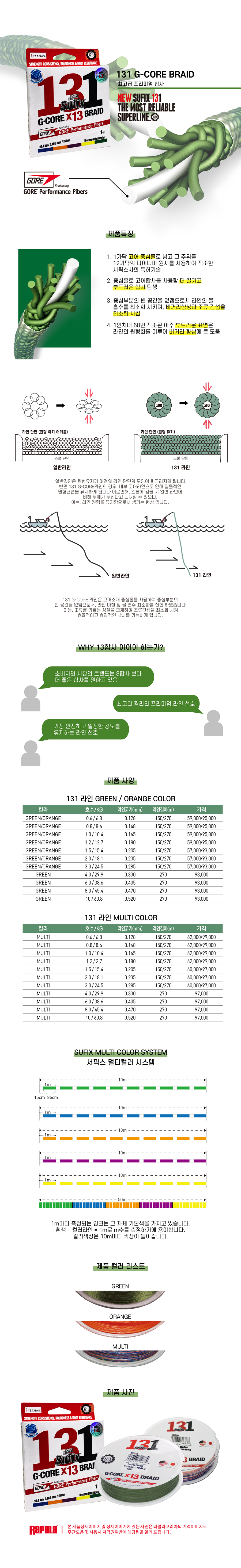 라팔라 서픽스 지코어 131합사 브레이드 13합사 270M 그린 / 멀티