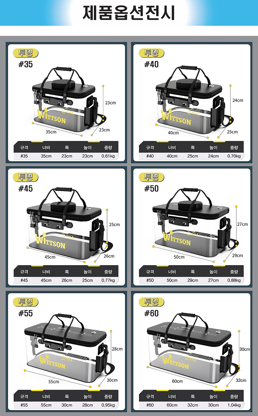 고투명도 두꺼운EVA소재 낚시 고기 투명살림통 다용도 낚시통 가방