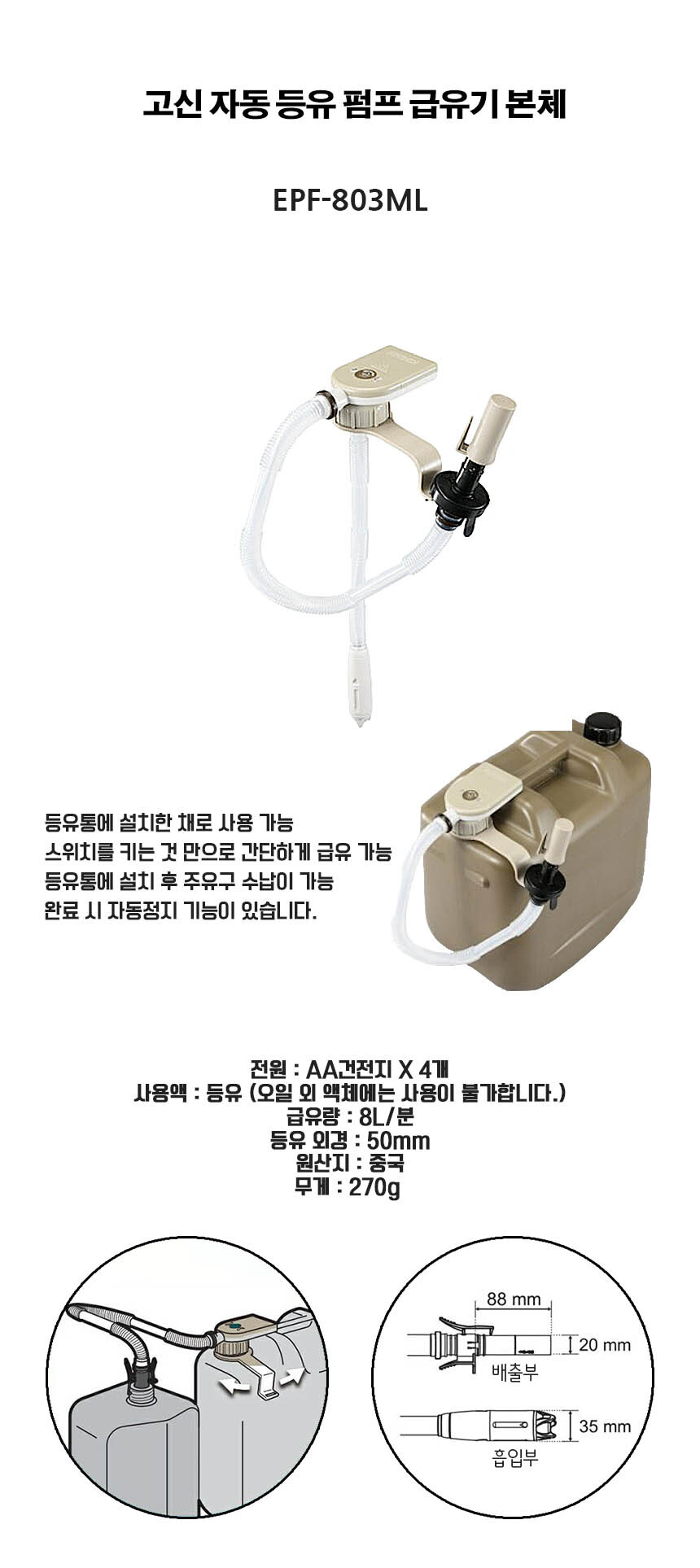 고신 자동급유기 + 탕게 폴리탱크 캠핑 등유통 + 등유통어댑터 3종세트 등유통브랜드 용량 10L 20L 선택가능