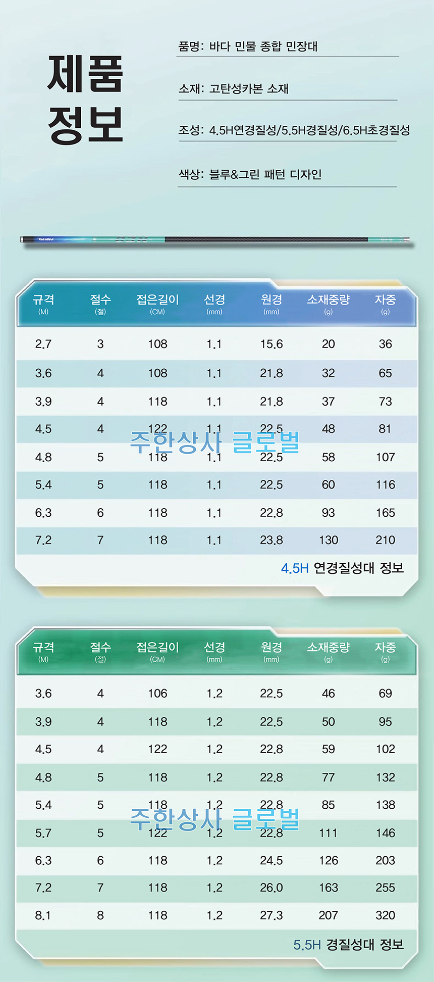 30T 고탄성카본 경량 강력허리힘 경질성 바다 민물 종합민장대