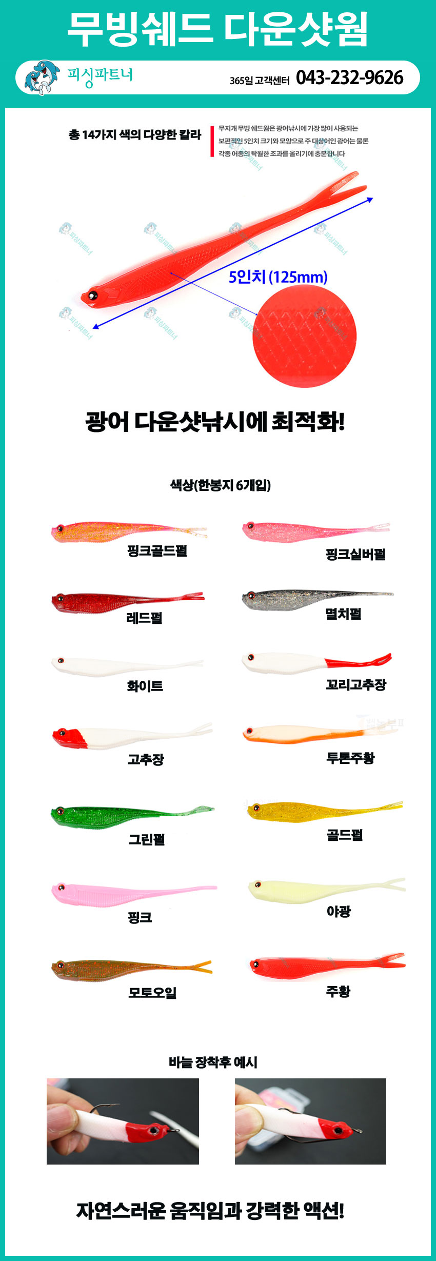 무빙쉐드 다운샷웜 5인치(6개입) 다운삿채비 광어웜