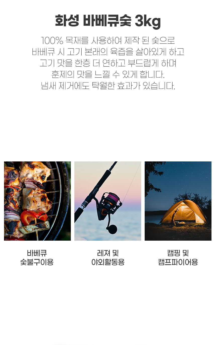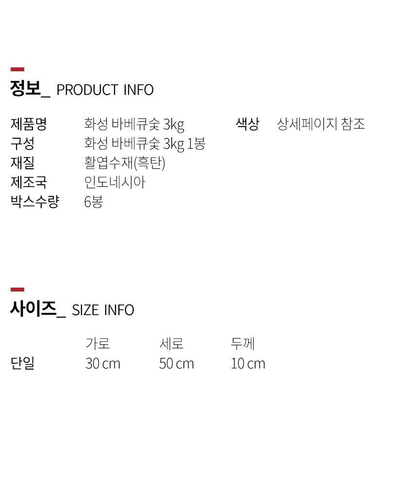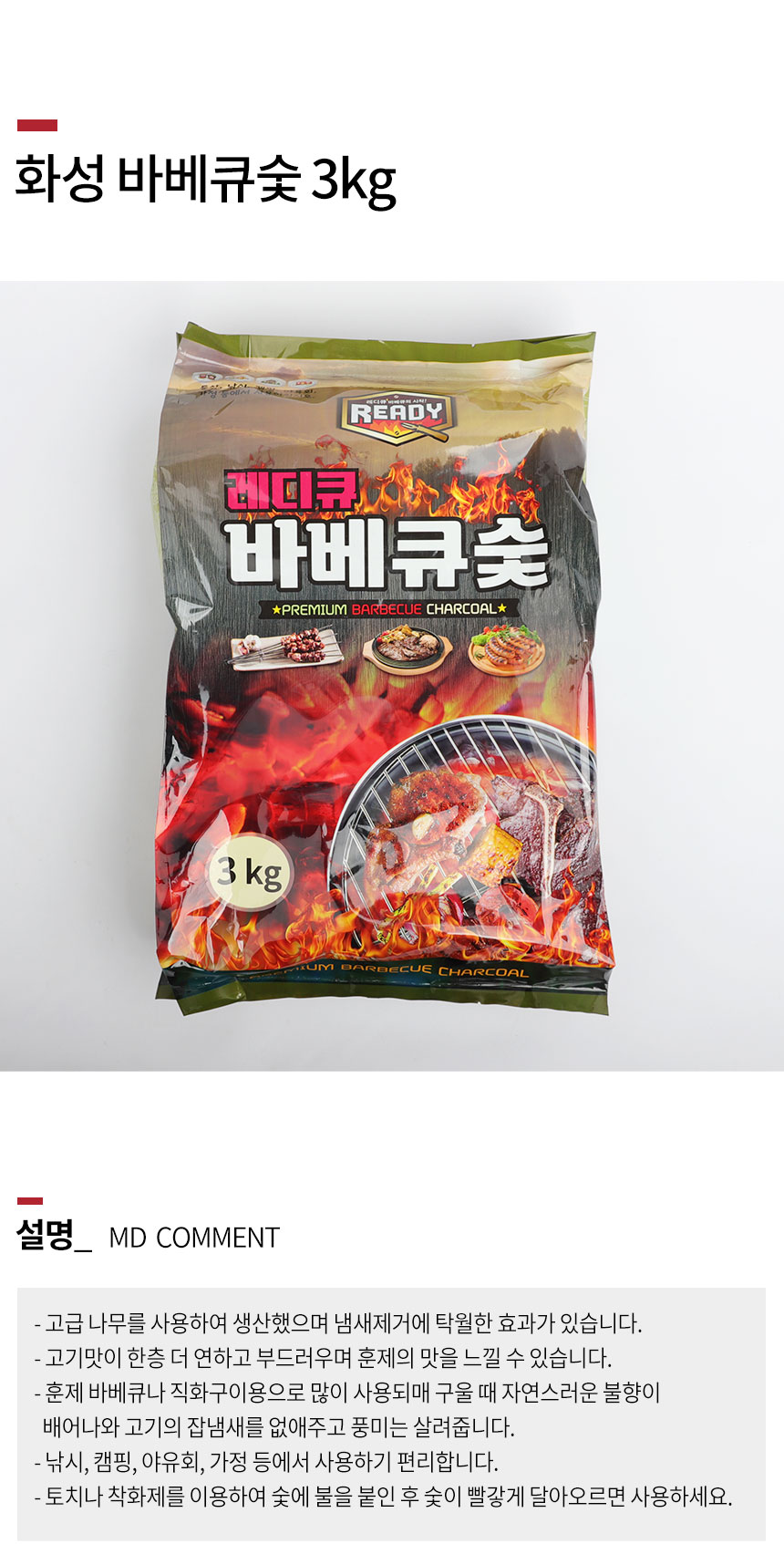 화성 바베큐 숯 3kg (890185) 참숯 고기 구이용 캠핑