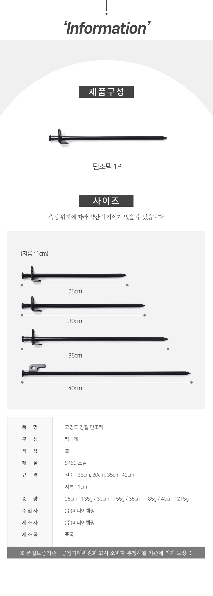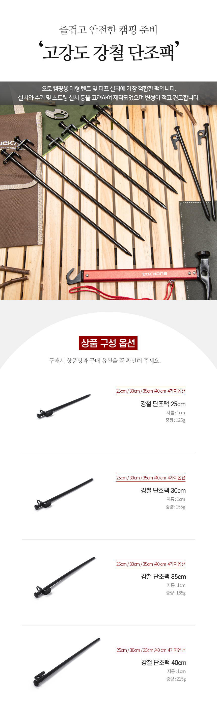 BUCK703 초특가 SALE 고강도 강철 단조팩 40cm 1P 텐트 타프 타프폴대 데크팩 팩가방 캠핑팩 캠핑망치