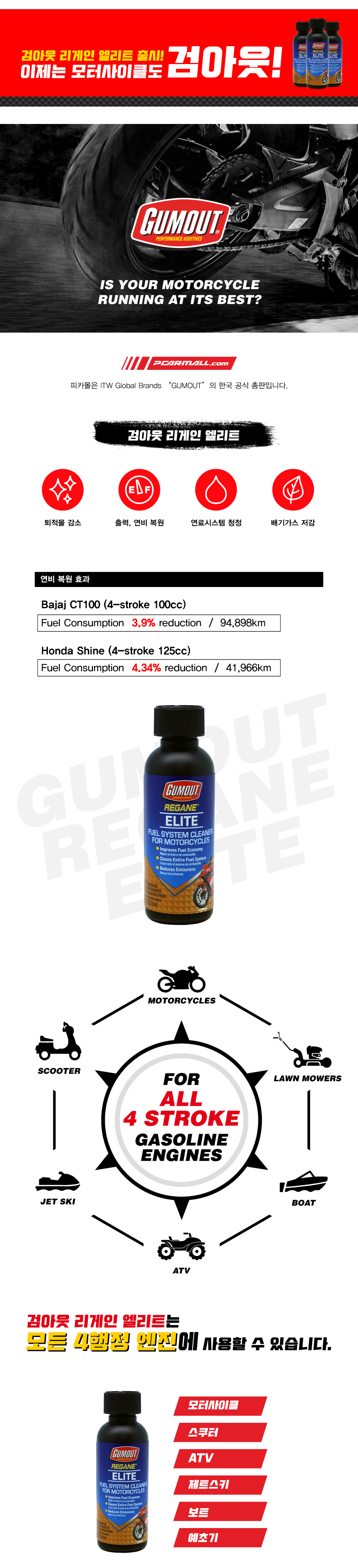 | 적용차종 | 모터사이클,스쿠터,ATV,제트스키,보트,예초기 등 4행정 엔진에 사용가능 |