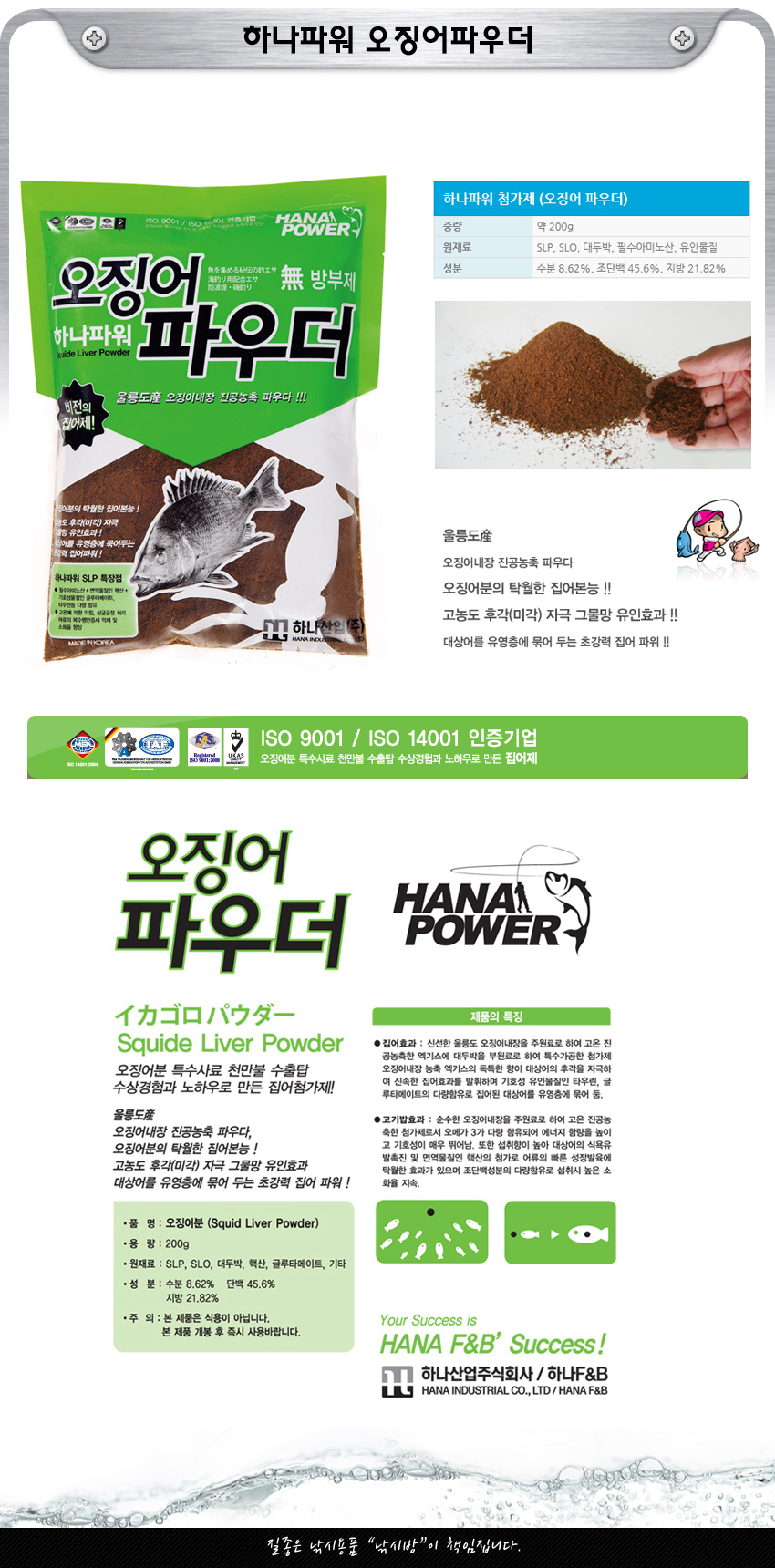 하나파워 오징어파우더 첨가제 바다집어제 파우다 밑밥