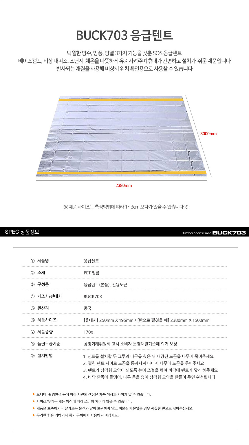 캠핑 필수품 응급텐트 응급침낭커버 비상 은박 보온 응급 등산 생존 재난 체온유지 서바이벌