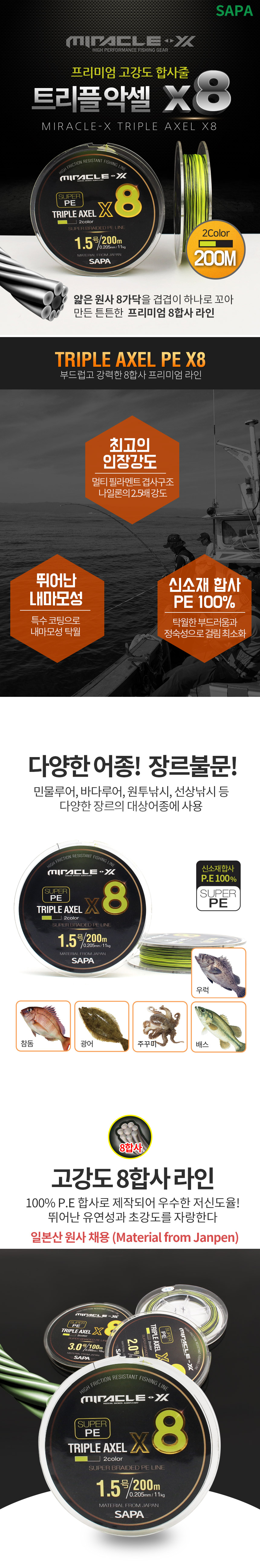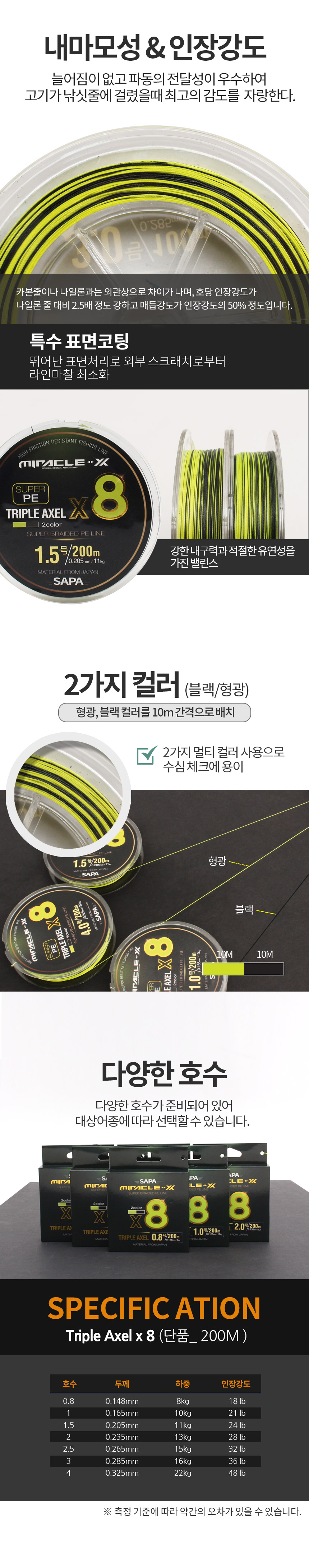 싸파 트리플악셀 8합사 200M 1호 2색 패키지 낚시줄