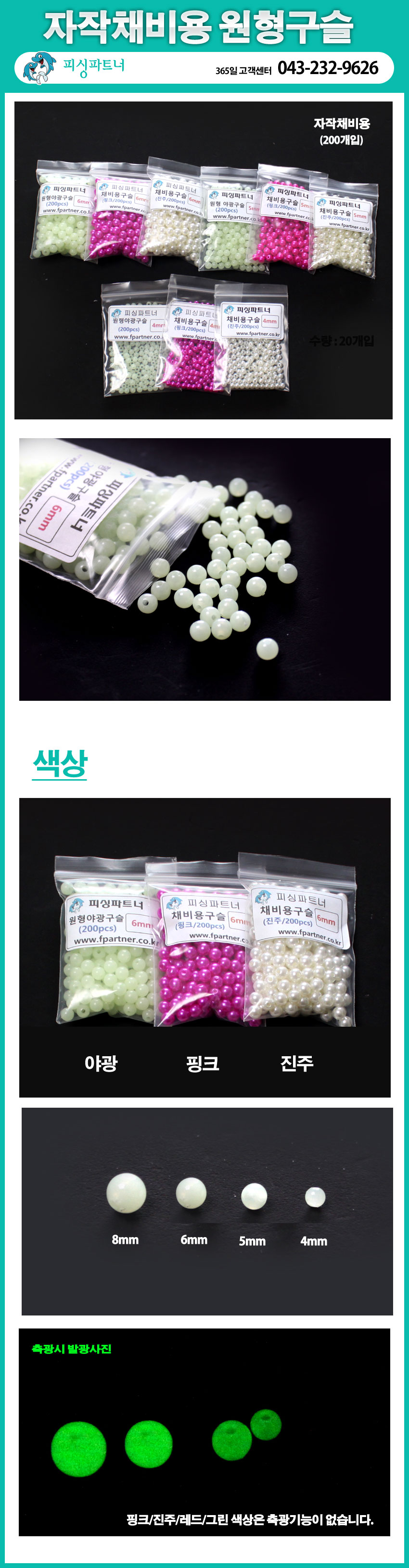 자작채비용 원형구슬(200개입) 야광구슬 채비용구슬