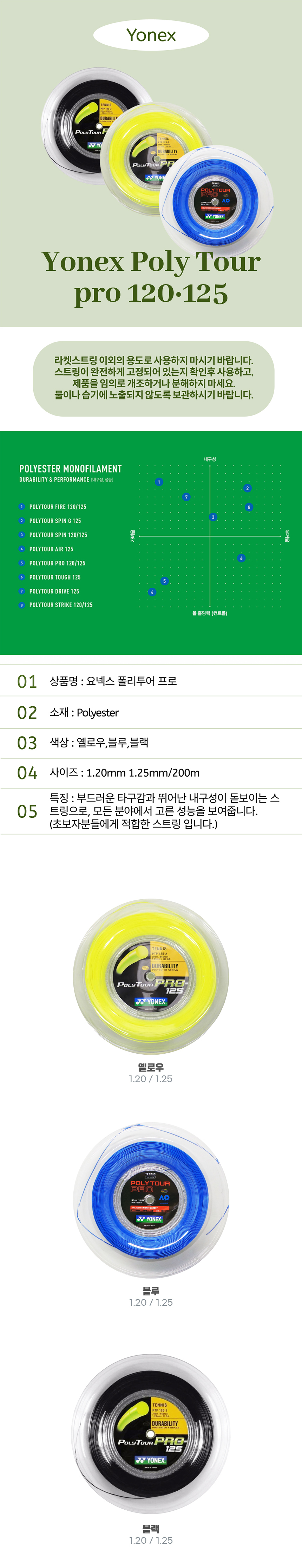 요넥스 폴리투어 프로 1.20 1.25 블랙 옐로우 블루 200m 릴