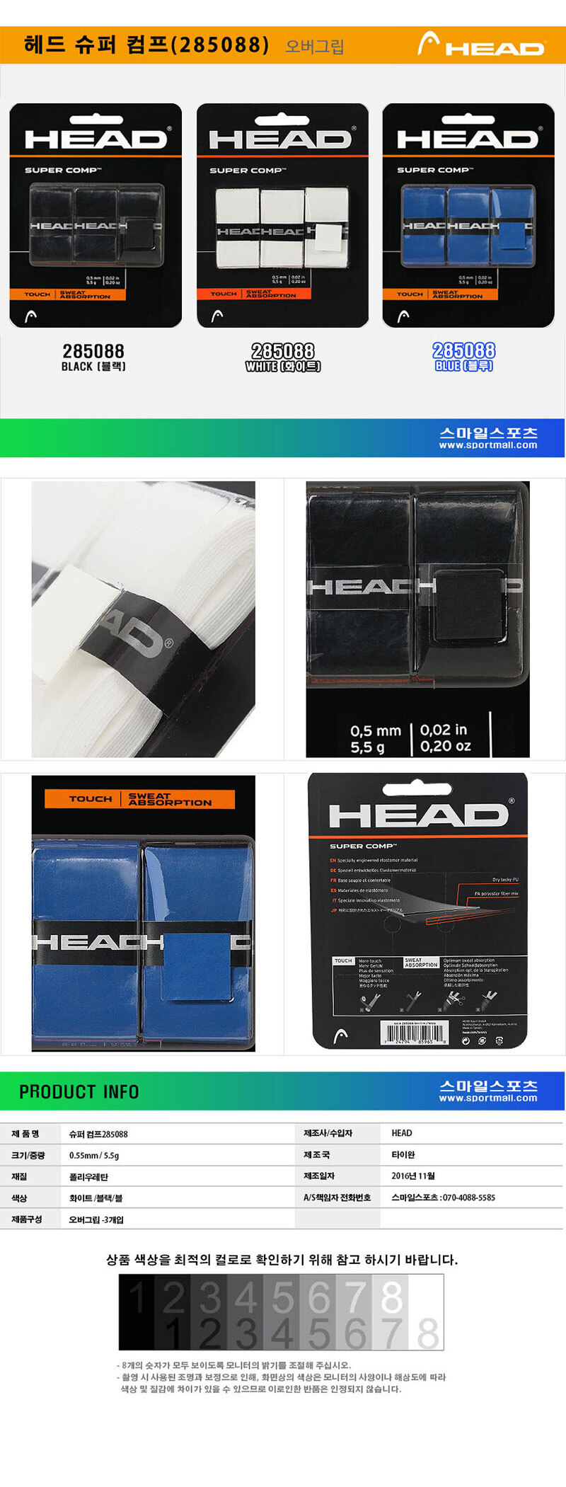 헤드 슈퍼 컴프 오버그립 285088 테니스 배드민턴 그립 3개입
