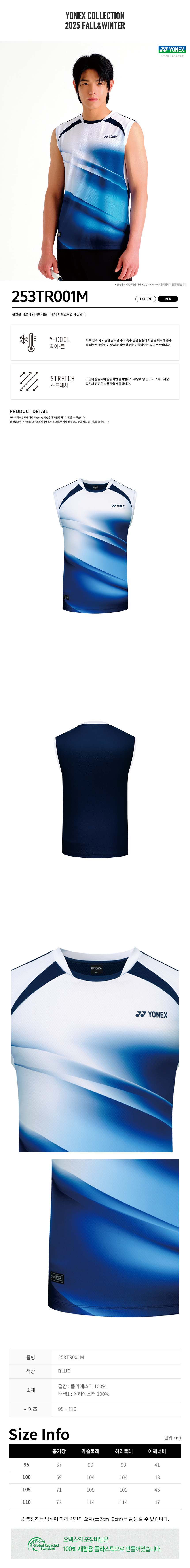 요넥스 253TR001M 배드민턴 남성 민소매 게임 티셔츠
