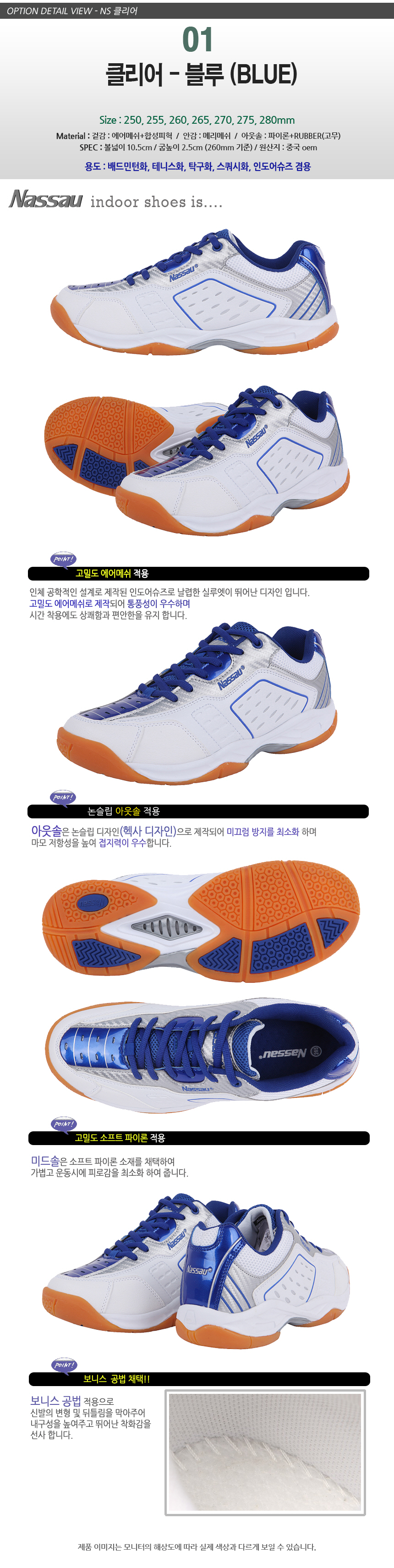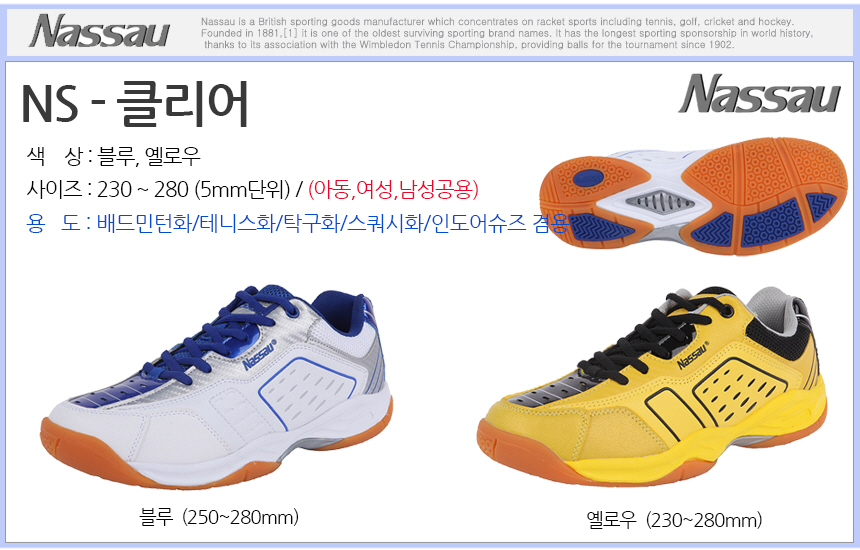 NASSAU 정품 배드민턴화 탁구화 배구화 테니스화 인도어슈즈 운동화_ 클리어