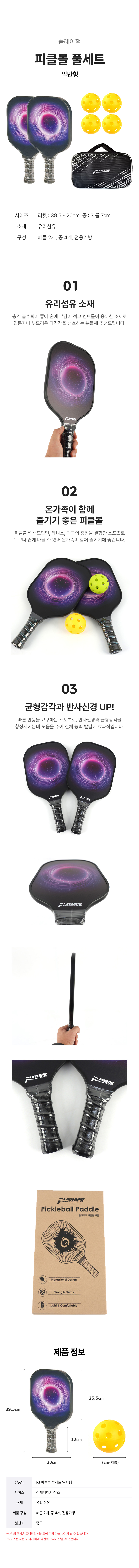 플레이잭 피클볼 풀세트 일반형 2인 유리섬유 패들 라켓 공 가방 포함