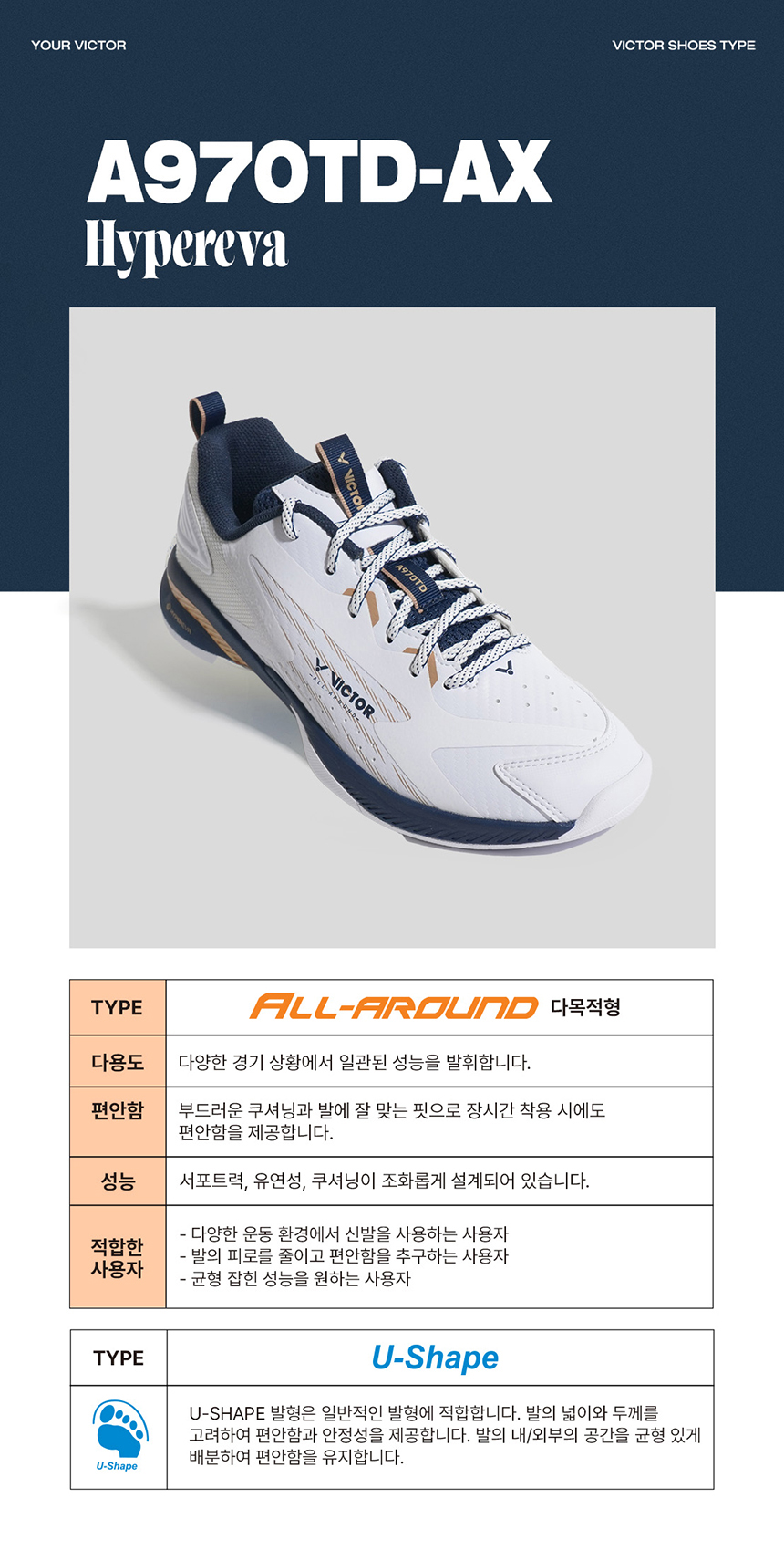빅터 배드민턴화 ALL-AROUND A970TD AX-WHITE U-SHAPE