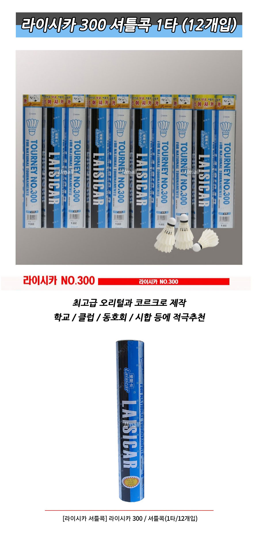 라이시카 300 배드민턴콕 셔틀콕 12개 시합 학교 클럽