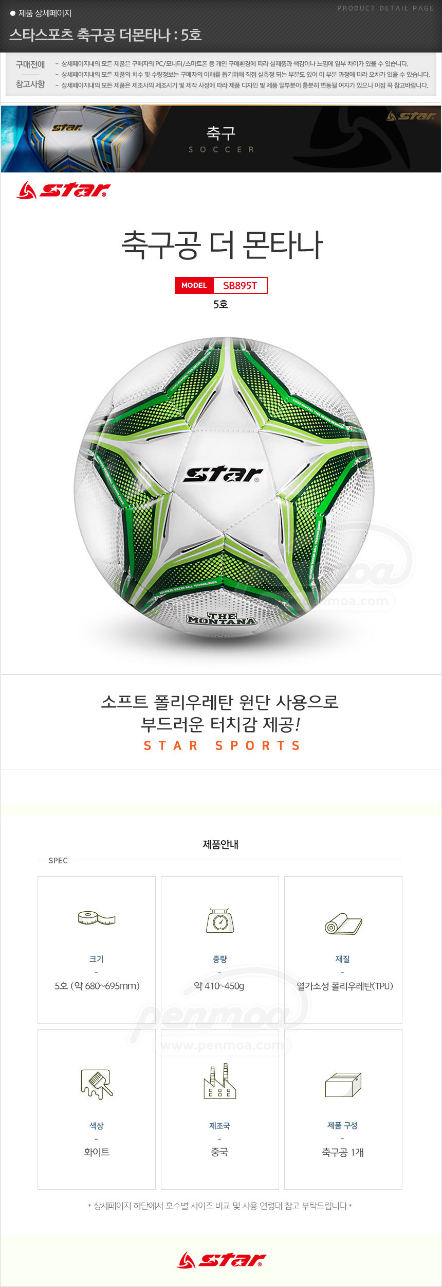스타스포츠 축구 공 : 더 몬타나 축구공 5호 (SB895T)