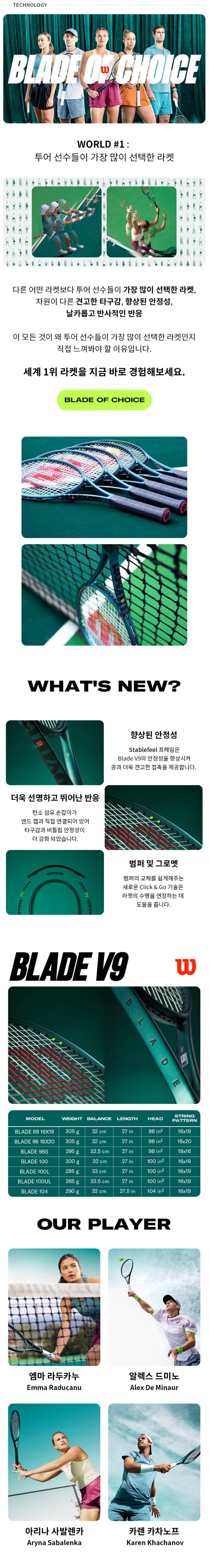 윌슨 2024 블레이드 100 V9 300g 16x19 테니스라켓