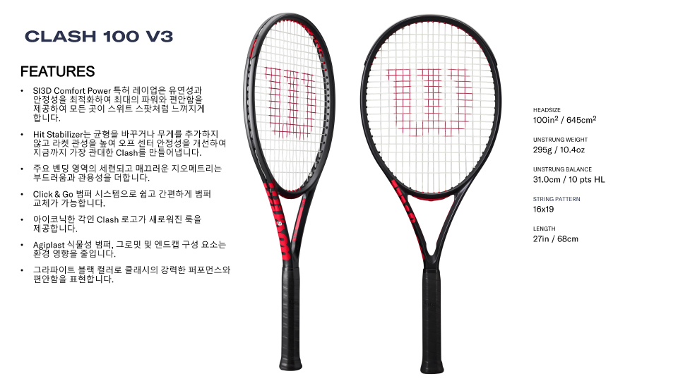 윌슨 2025 클래시 100L V3.0 280g 16x19 테니스라켓
