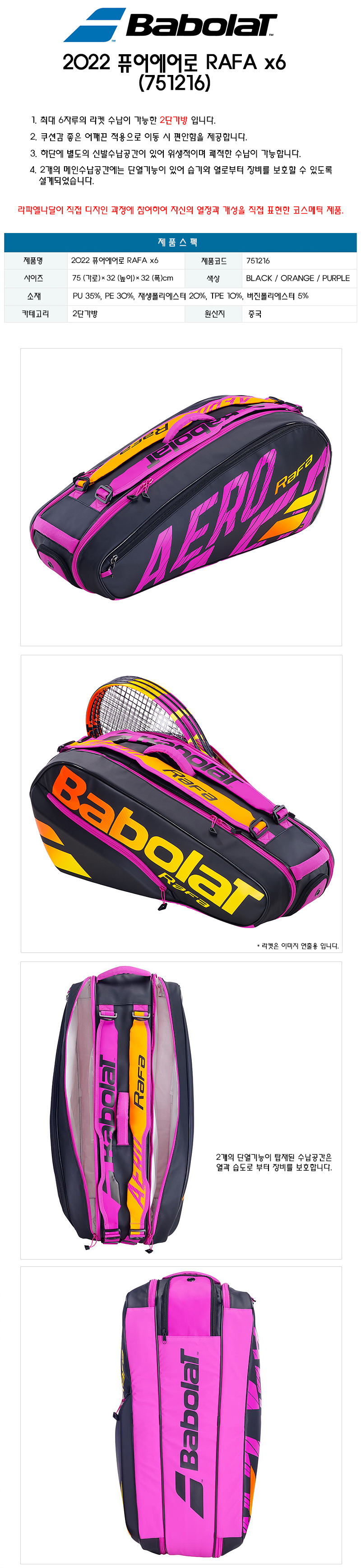 바볼랏 2022 라켓백 퓨어에어로 라파 x6 2단 테니스 라켓 가방 751216