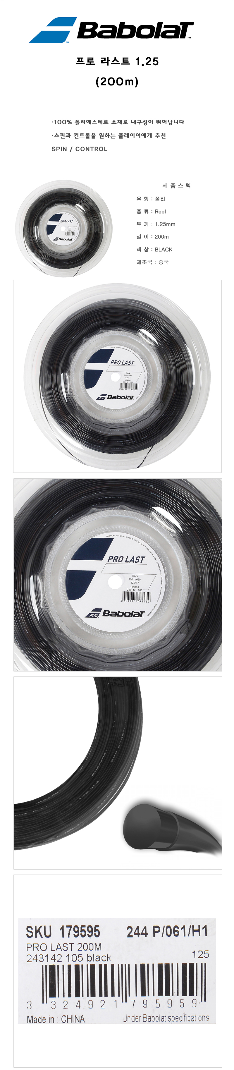 바볼랏 테니스 스트링 프로 라스트 200m 릴 1.25 BK