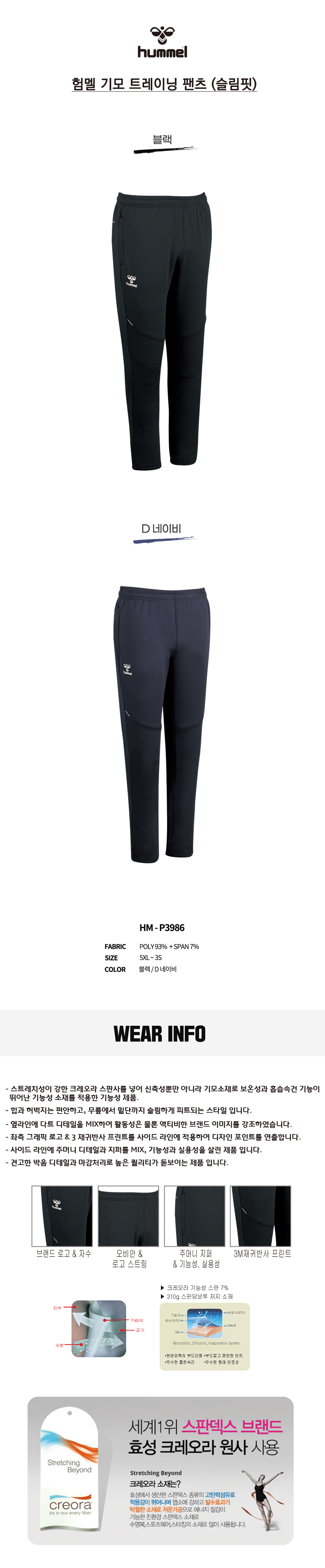 2024 F/W 험멜 슬림핏 기모 트레이닝 팬츠 HM-P3986