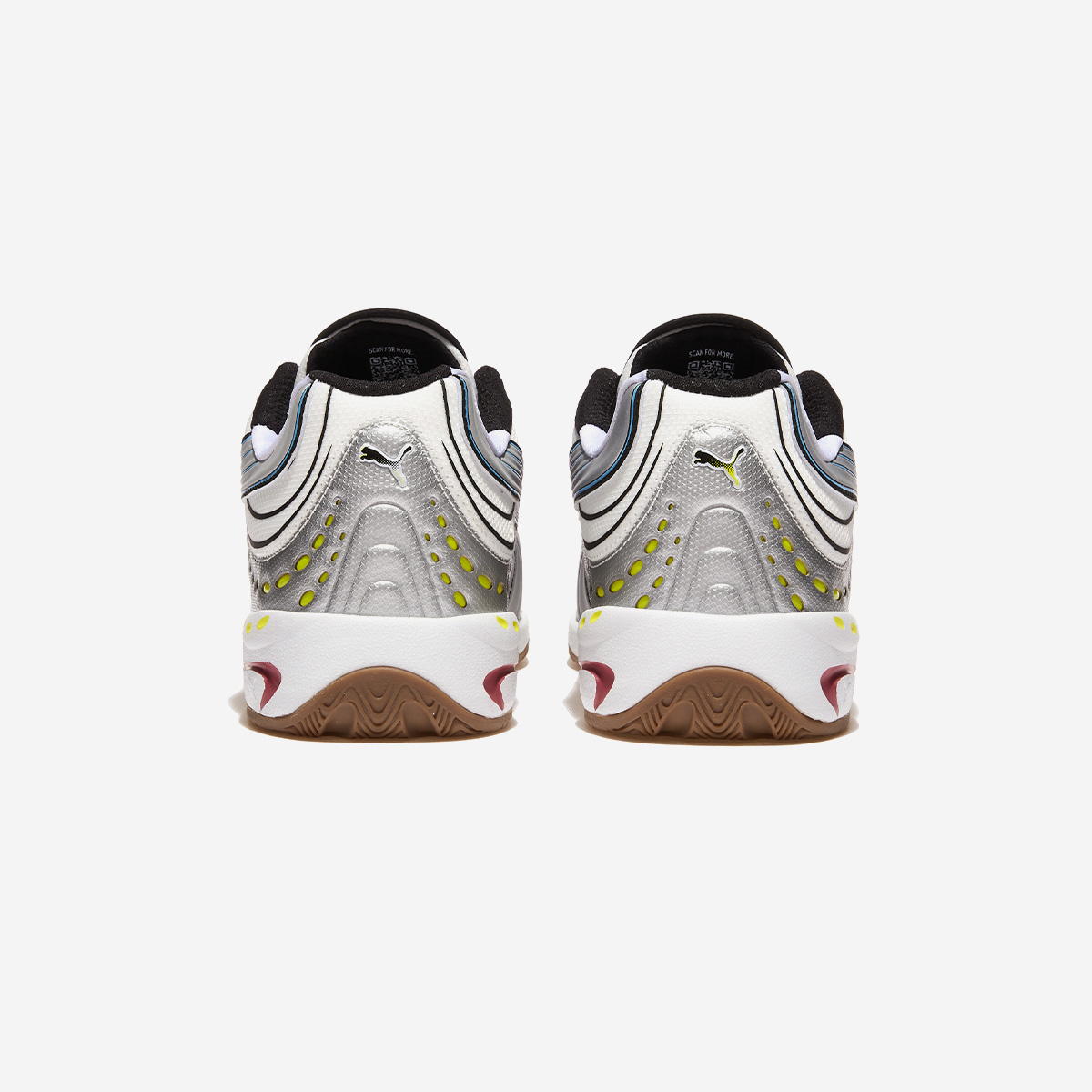 GOODS SPECIFICS - 소재 : 합성가죽+폴리에스터 - 색상 : PUMA Silver-PUMA White - 치수 : 230 / 235 / 240 / 245 / 250 / 255 / 260 / 265 / 270 / 275 / 280 - 굽높이 : 2.8cm - 제조자 : PUMA - 제조국 : 중국 - 제조년월 : 상품별 입고시기에 따라 상이하여, 배송 받으신 제품의 라벨 참고 바랍니다. - 품질보증기준 : 관련 법 및 소비자 분쟁 해결 기준에 따름 (품질보증기간 : 구입일로부터 6개월 이내) - 소재별 관리방법 : 상품 착용 및 세탁 시에는 제품에 부착된 라벨 및 취급 주의사항을 꼭 먼저 확인해 주시길 바랍니다. 가벼운 오염물이 묻었을 때에는 부드러운 솔로 털어내주시기 바랍니다. 물세탁이 되지 않는 소재입니다. 물에 젖지 않게 해주시기 바라며, 만약 물에 젖었을 때에는 마른 걸레로 닦아주시기 바랍니다. |