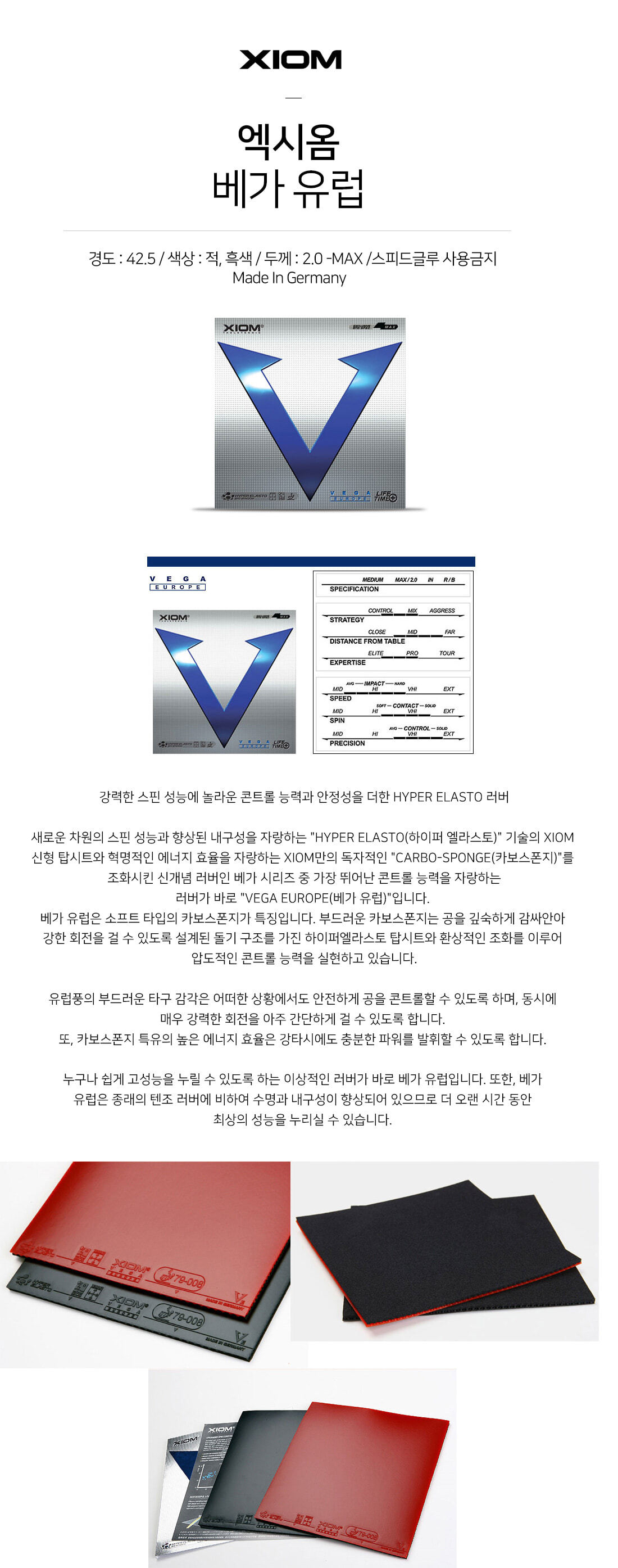 엑시옴 베가 유럽(VEGA EUROPE) 공격형 평면 탁구 러버
