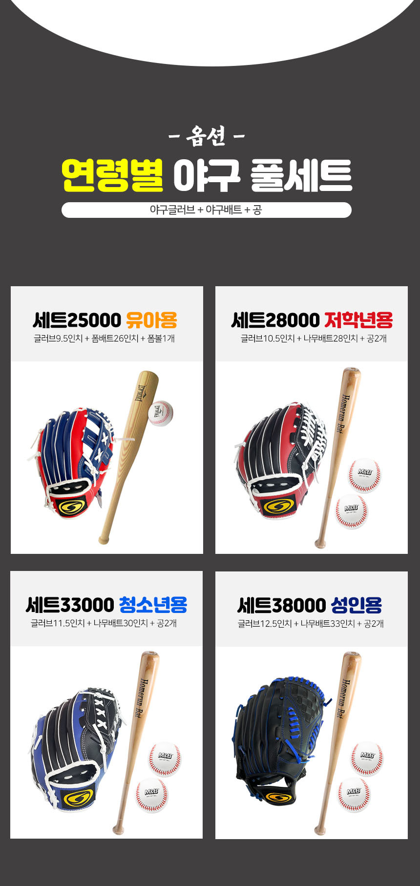 썬버드 어린이 야구글러브 10.5인치+야구배트+공 세트