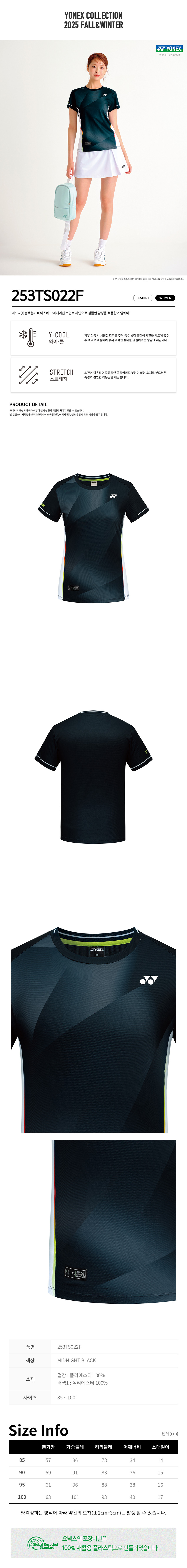 요넥스 253TS022F 배드민턴 여성 경기복 반팔 티셔츠