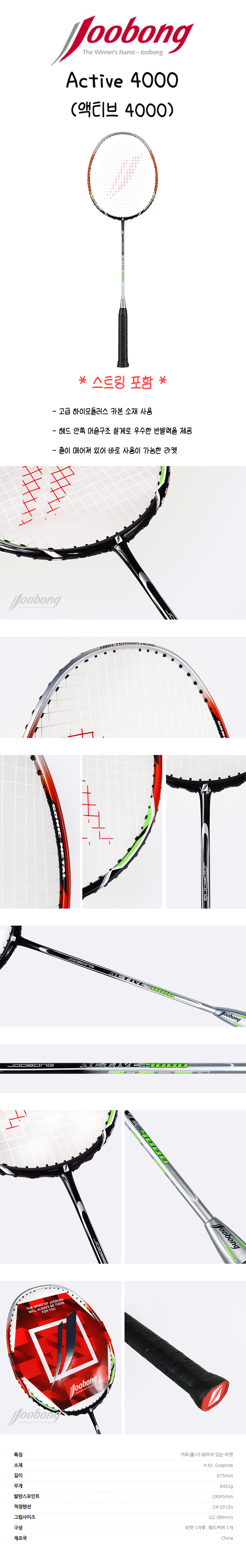 주봉 액티브 4000 84-86g 초심자용 배드민턴 라켓 Active