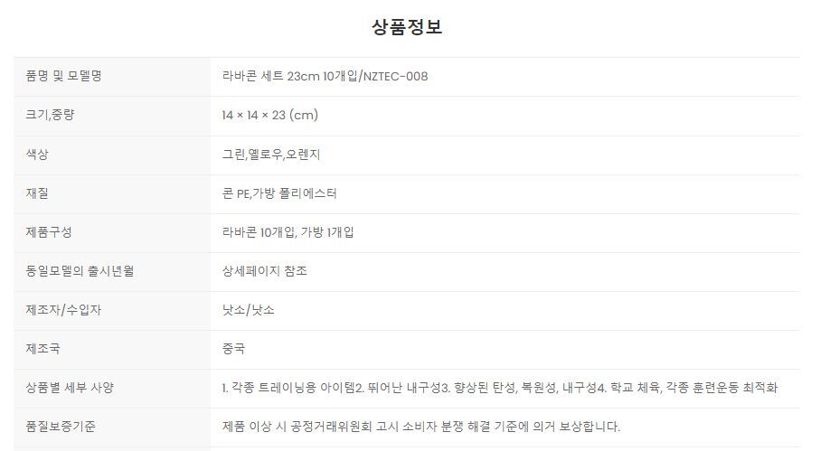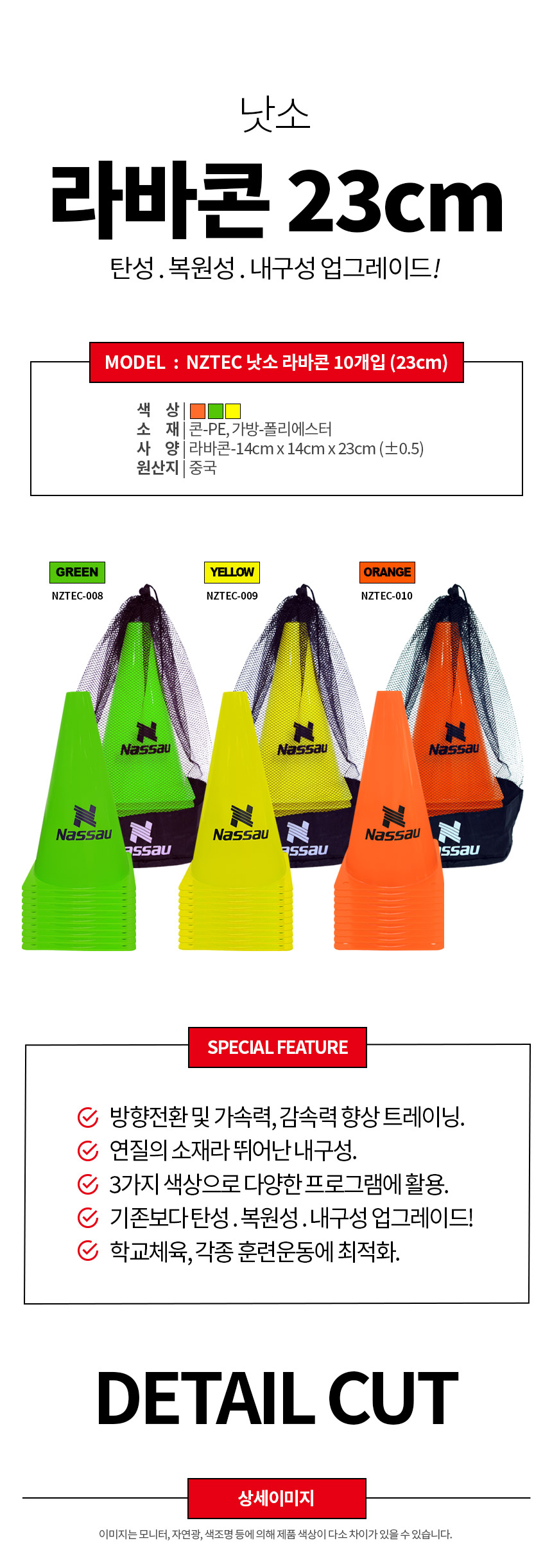 낫소 라바콘 세트 23cm 10개입 오렌지 옐로우 그린 NZTEC008 칼라콘