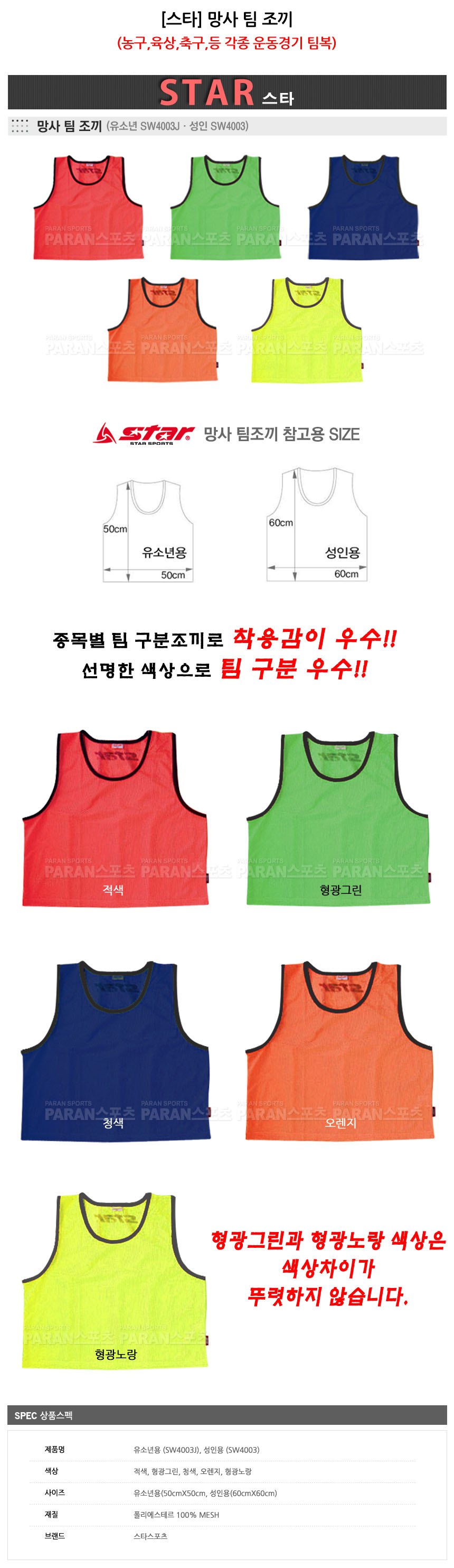 스타 팀조끼/망사팀조끼/단체팀조끼 성인용 유소년용