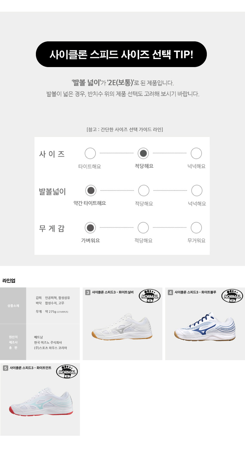 미즈노 사이클론스피드3 배드민턴화 실내체육화 탁구화 배구화 (신발주머니+그립 증정)