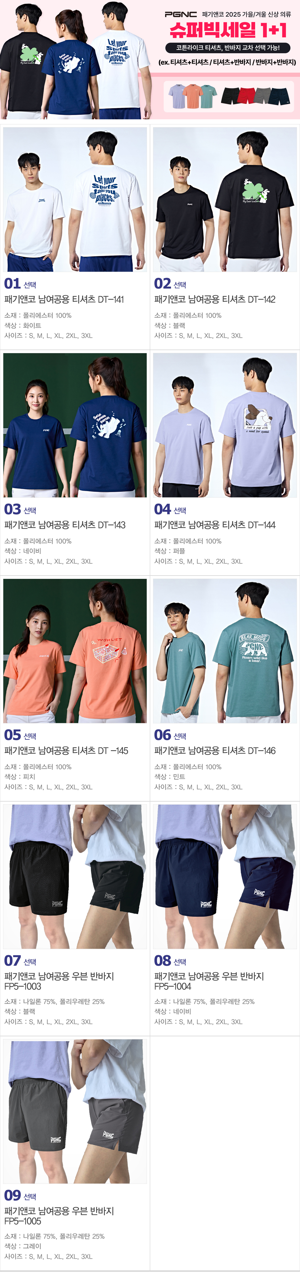 1+1 패기앤코 남성 여성 반팔 티셔츠 반바지 2벌 세트 2025 FW