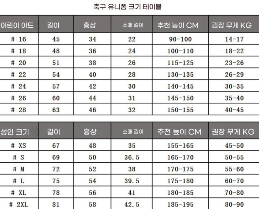 사이즈:S,M,L,XL,XS,키즈 16, 키즈 18, 키즈 20, 키즈 22, 키즈 24, 키즈 26, 키즈 28, 2XL