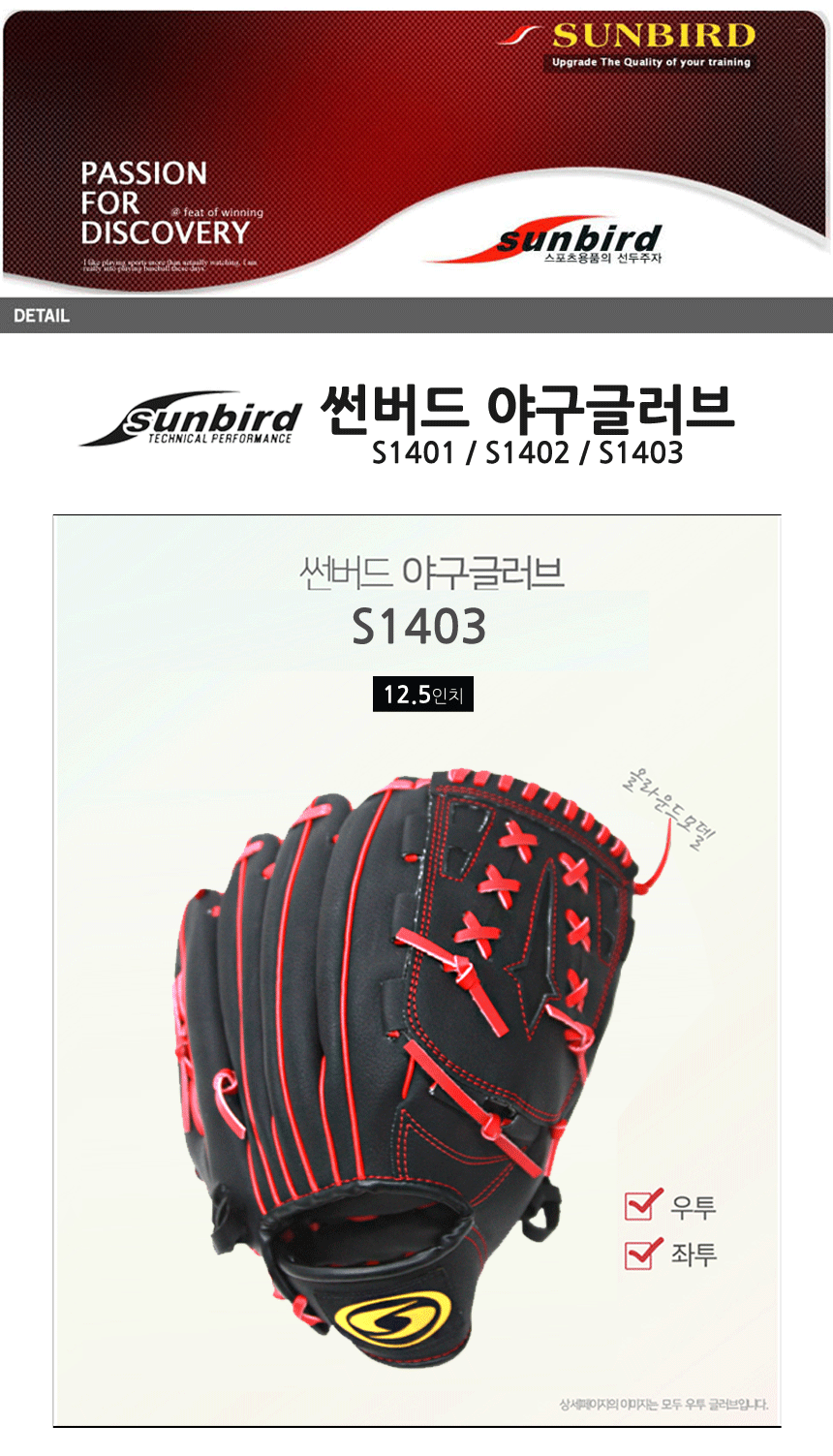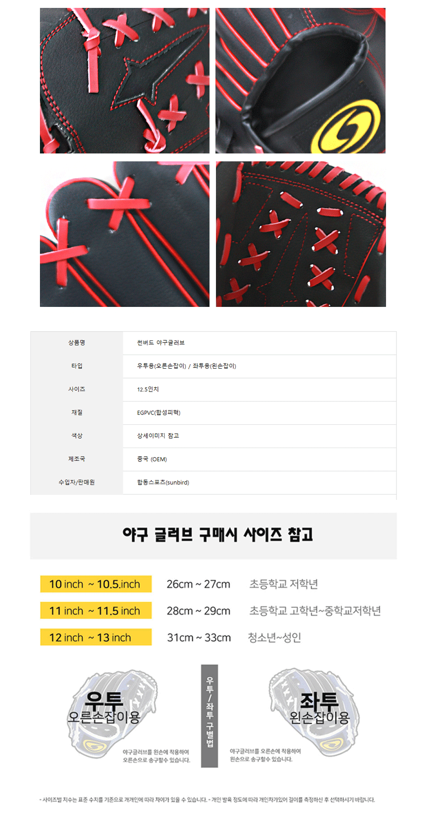 썬버드 야구글러브 S1403 12.5인치 중 고등학생 성인