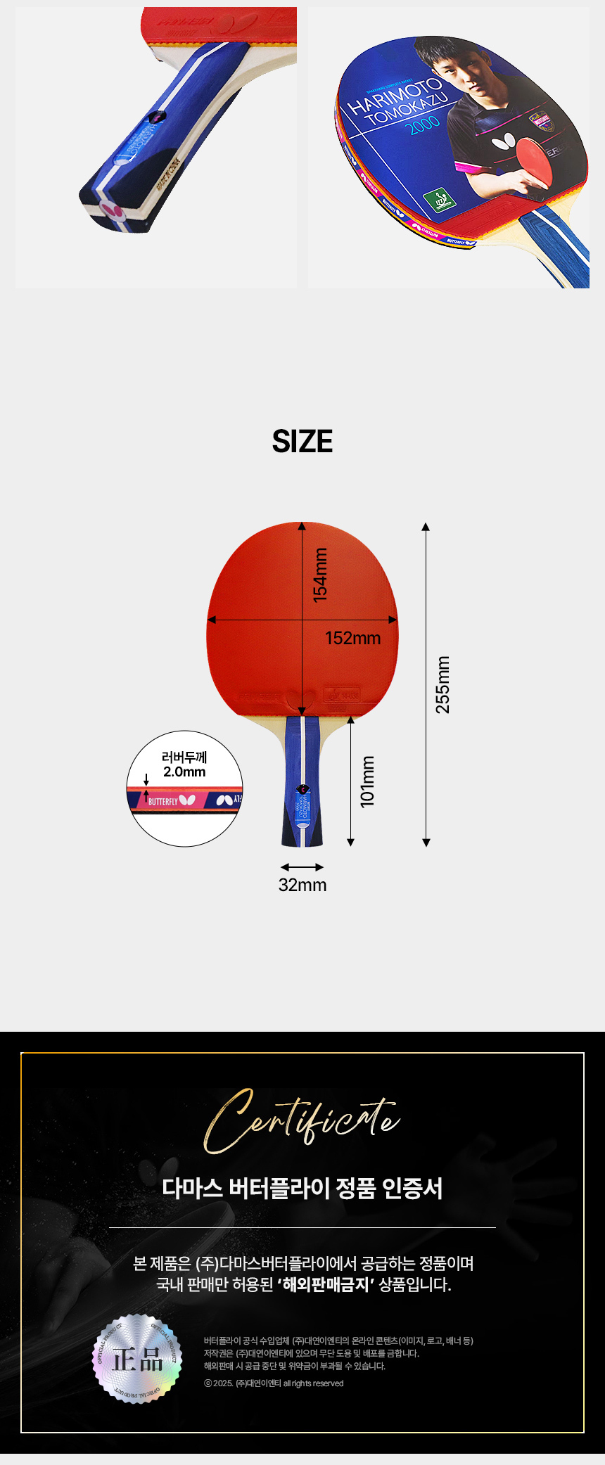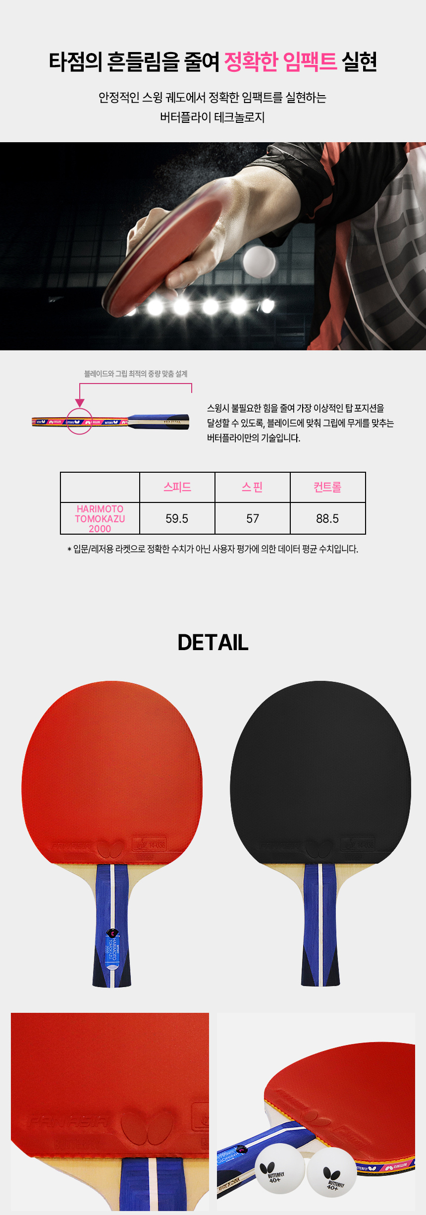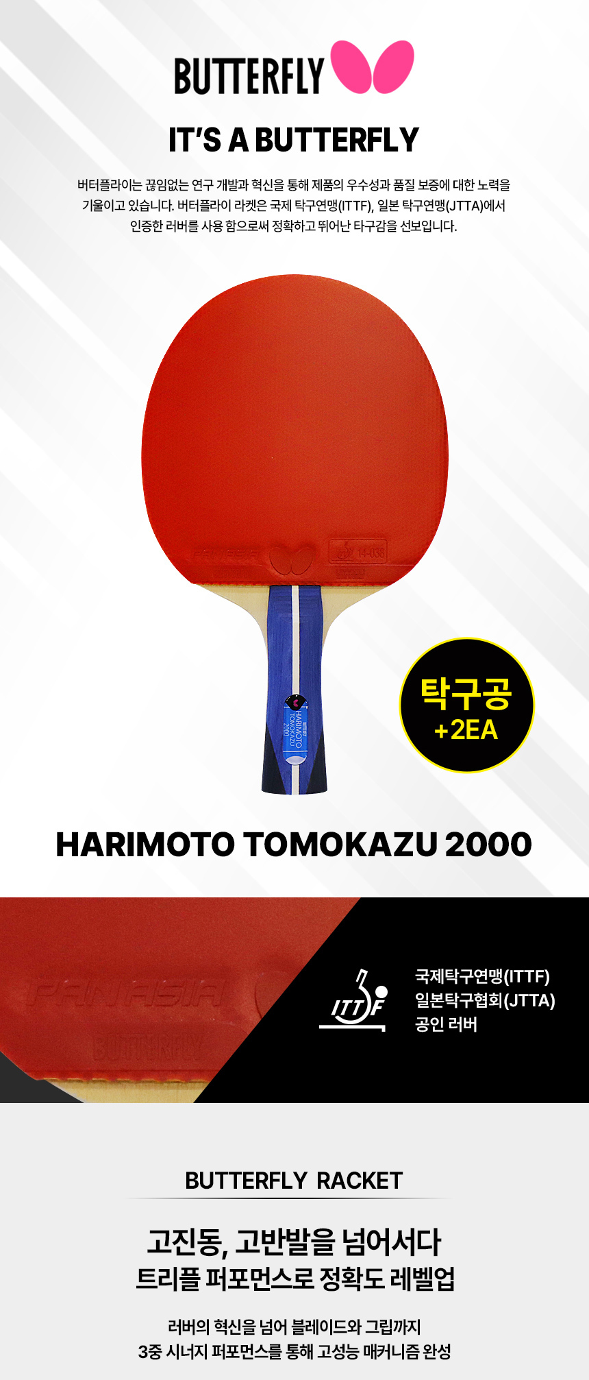 버터플라이 탁구라켓 쉐이크 하리모토 토모카즈 2000 탁구채 공 양면 핸드