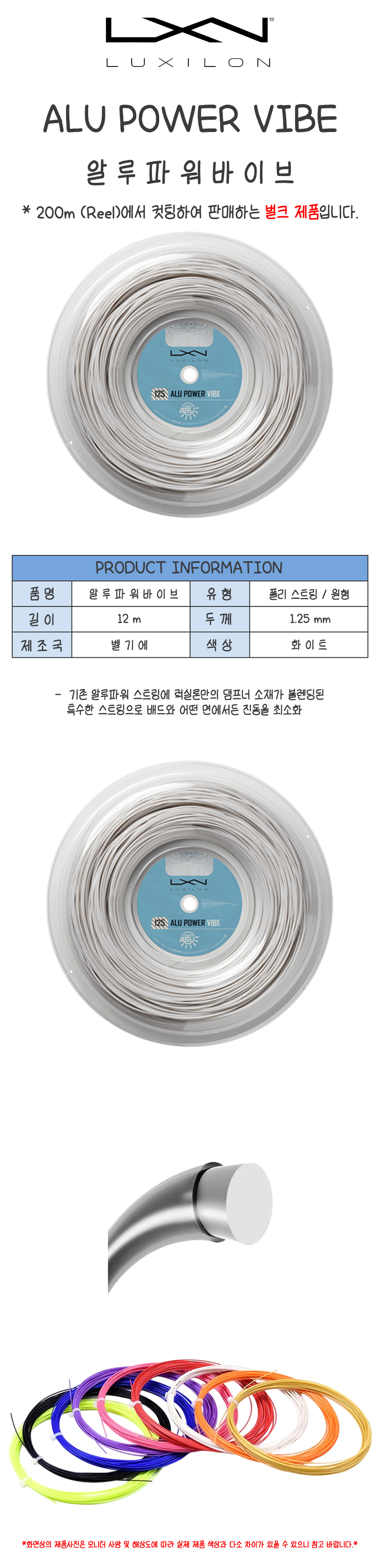 럭실론 알루파워 바이브 1.25 벌크 12m 테니스 스트링 거트 릴컷팅