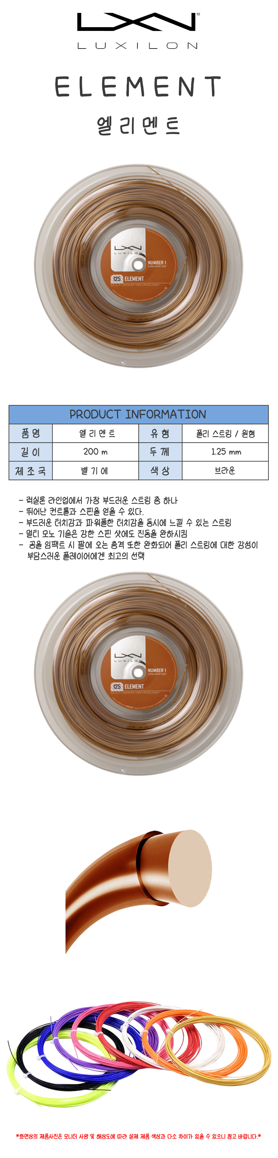 럭실론 엘리먼트 1.25 릴 200m 테니스 스트링 라켓 줄 거트