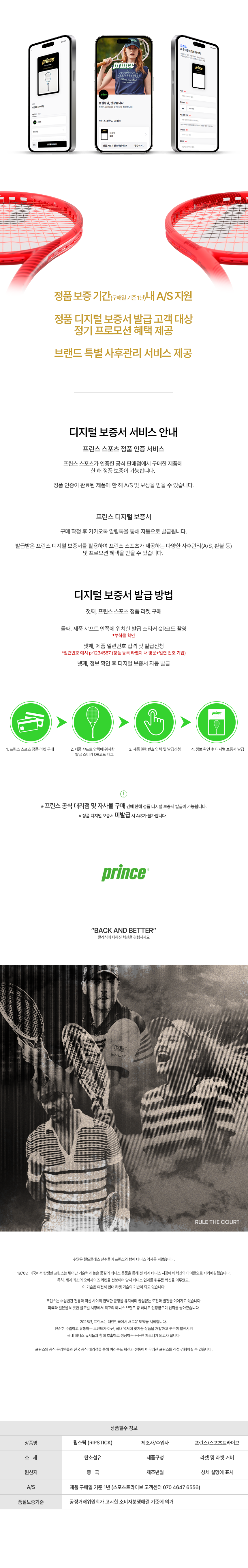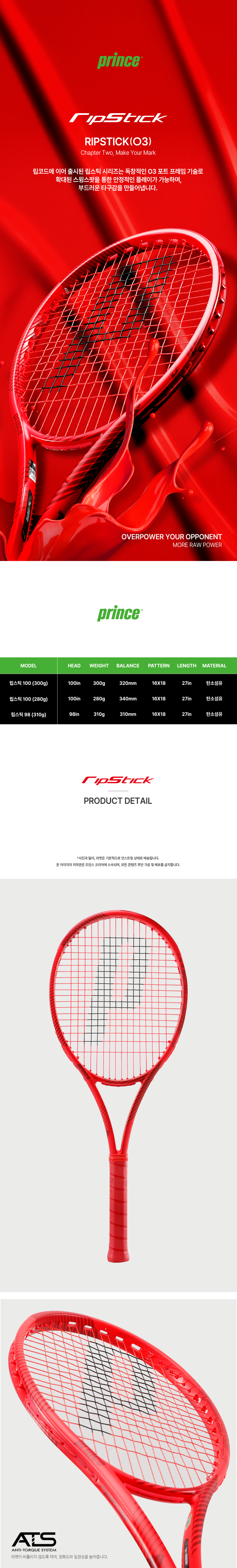 프린스 2025 RIPSTICK 립스틱 100 300G 16X18 테니스라켓