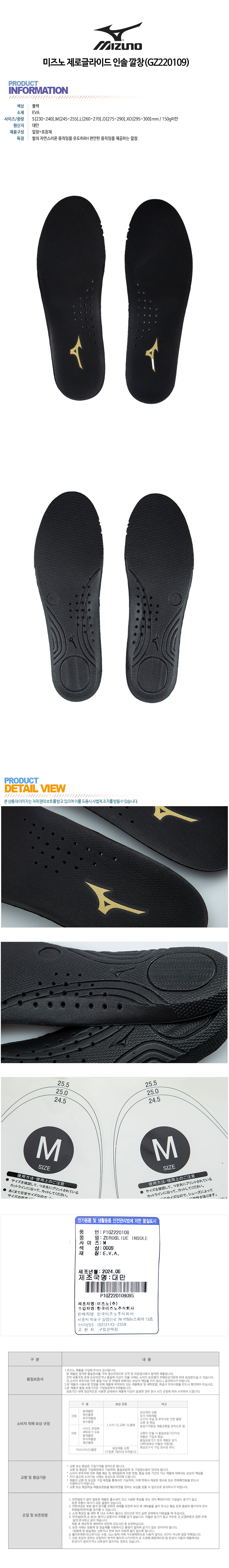 하프클럽/미즈노 제로글라이드 인솔 깔창(GZ220109)