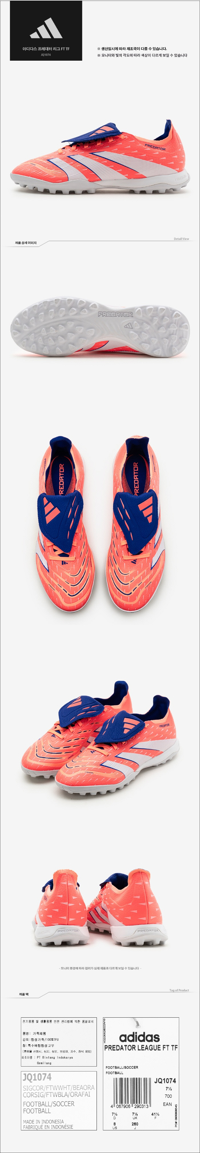 아디다스축구화 ZQC JQ1074 프레데터 리그 폴드오버 텅 TF 풋살화