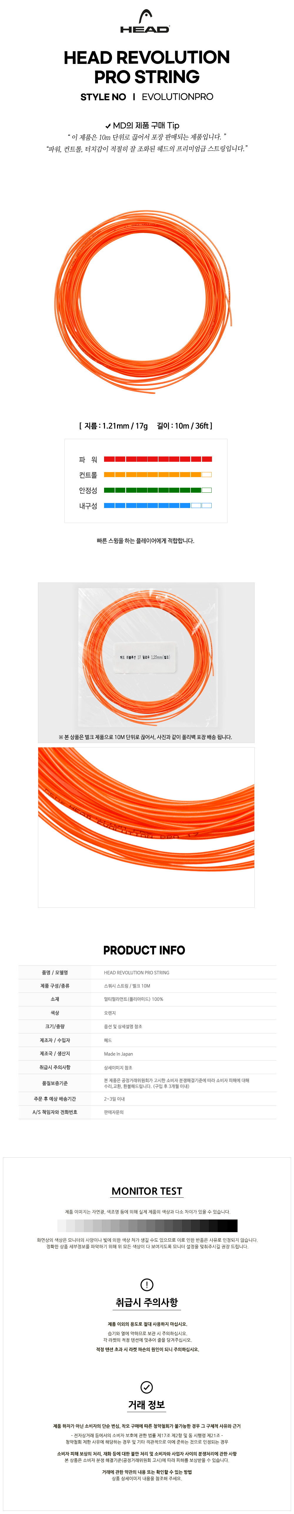 헤드 에볼루션 프로 오렌지 (벌크) 스쿼시 스트링