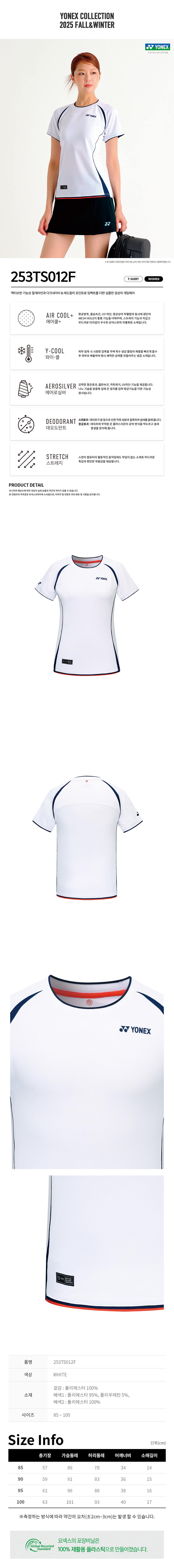 요넥스 253TS012F 배드민턴 여성 경기복 반팔 티셔츠