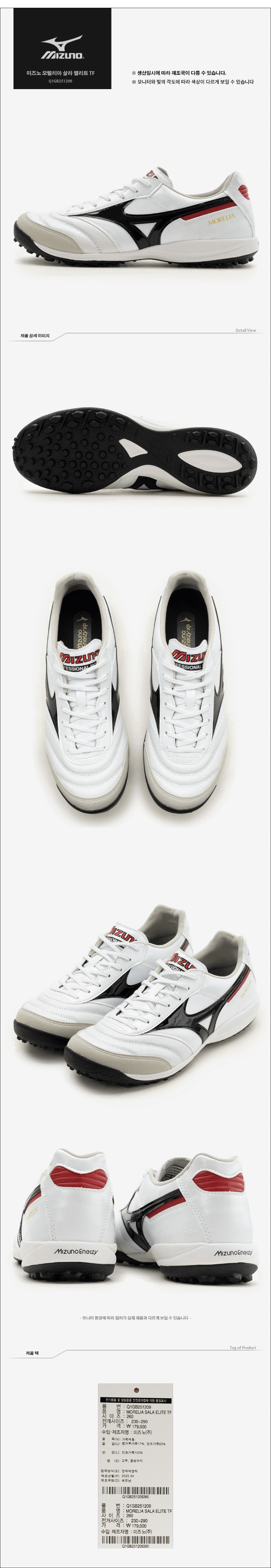 미즈노축구화 ZQJ Q1GB251209 모렐리아 살라 엘리트 TF
