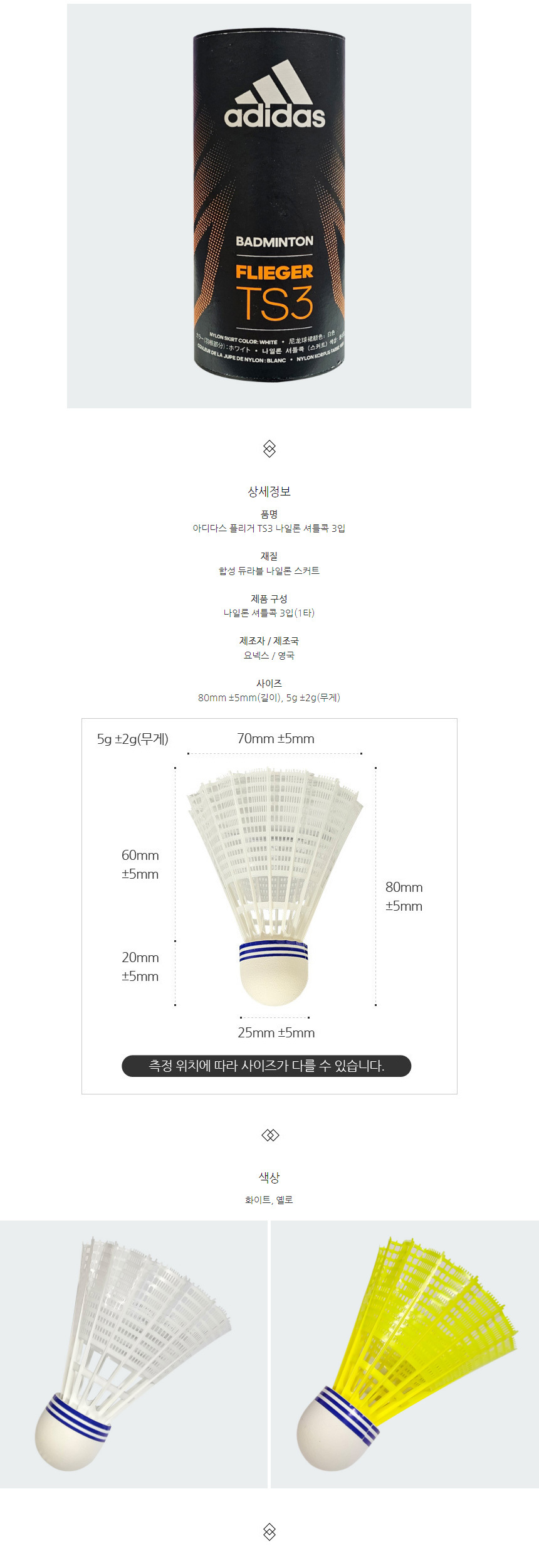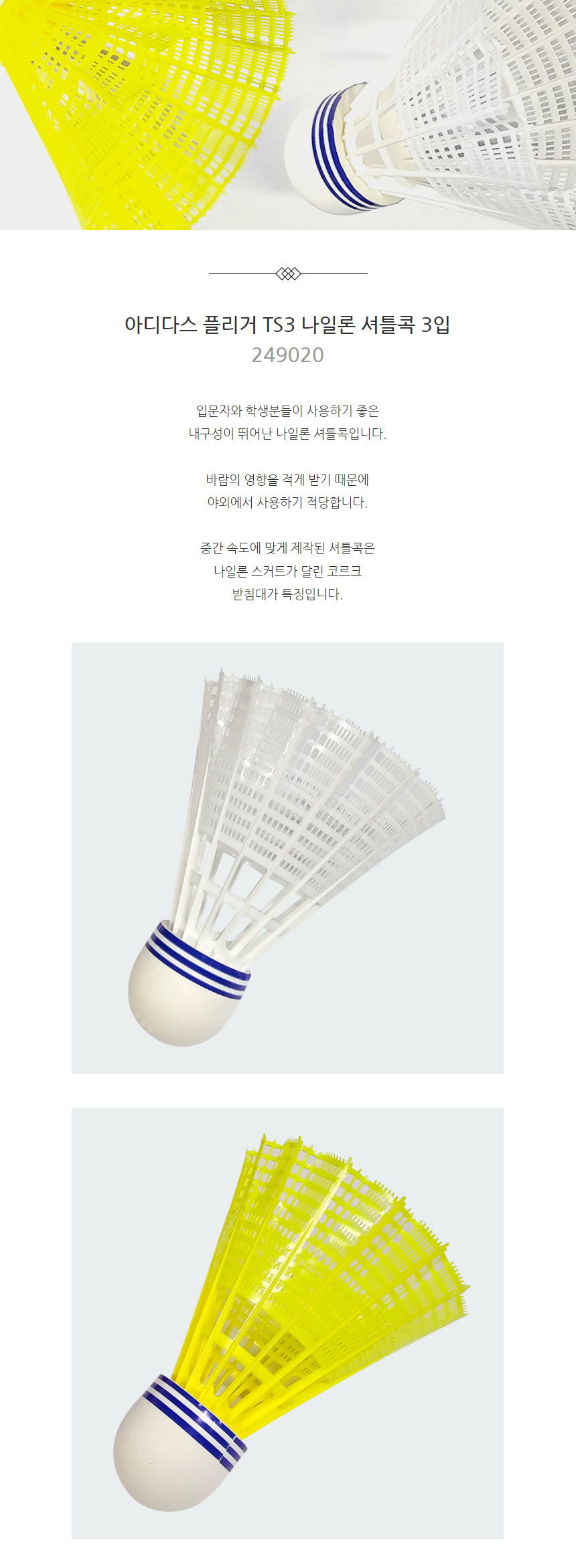 아디다스 셔틀콕 나일론 3입 플리거 TS3 화이트 옐로 아디다스