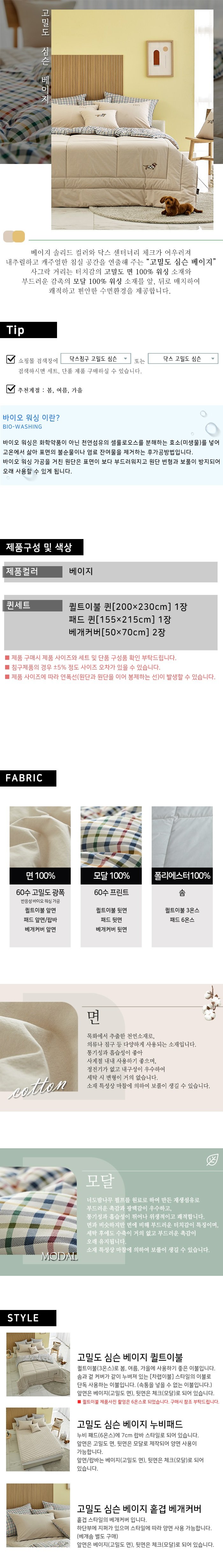 (신세계의정부점)고밀도 심슨 베이지3 퀸세트퀼트이불+패드+베개커버2장