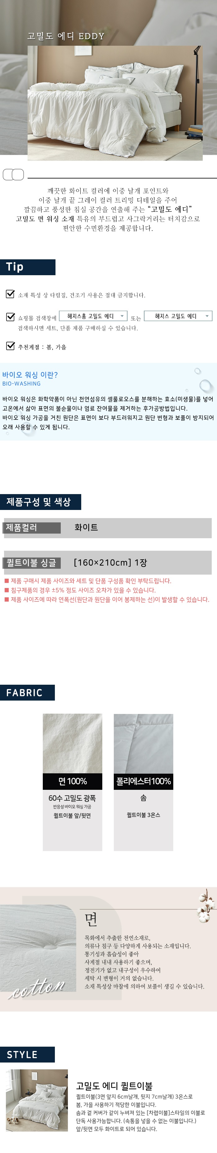갤러리아 고밀도 에디 화이트3온스퀼트이불 싱글