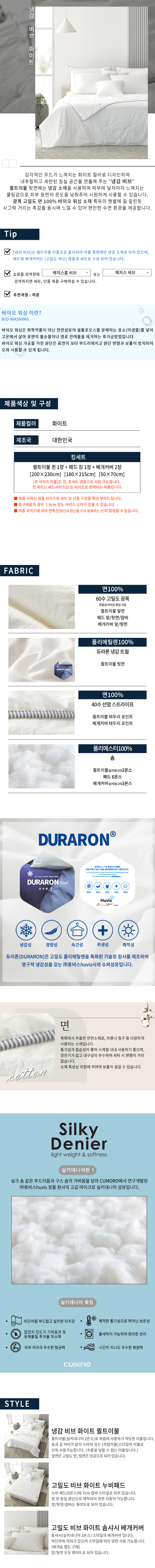 갤러리아 비브 화이트 냉감 퀼트이불 퀸+고밀도면 패드킹+고밀도면 베...